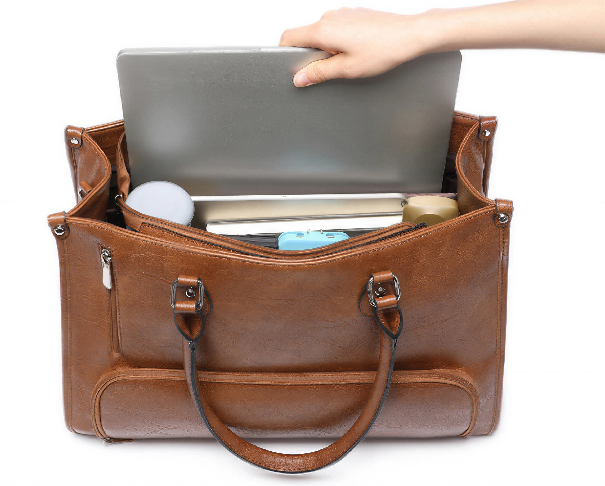 100% Spill-Proof Peace of Mind: Our pro-grade lining ensures that even if a container tips, your laptop and leather exterior remain pristine.